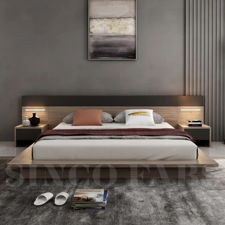 LTW Integrated Slumber: Modern Low Platform Bed with Attached Floating Nightstands