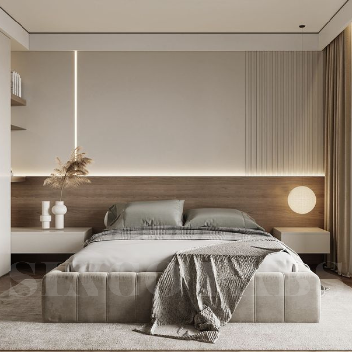 King Sleek Platform Bed: Modern Low Bed with Plush Upholstered Frame