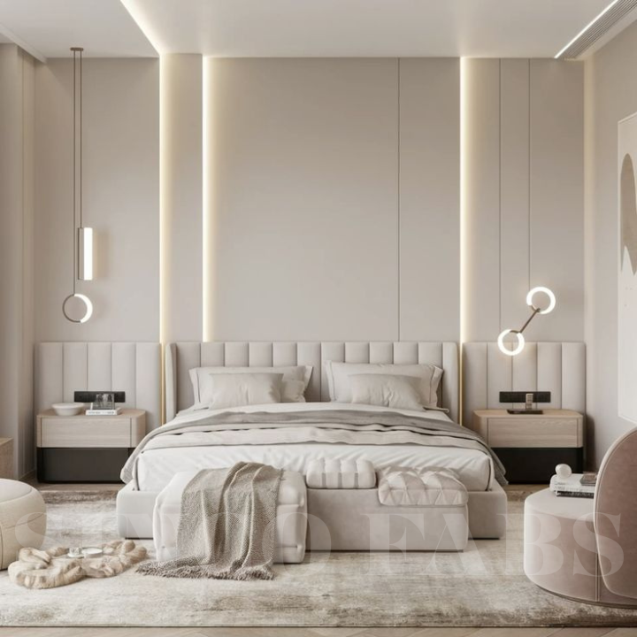Caracole Integrated Headboard Bed: Modern Upholstered Luxury with Attached Sides