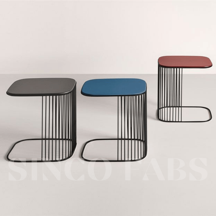 Modern Side Table Set with Distinctive Linear Frames & Vibrant Tops
