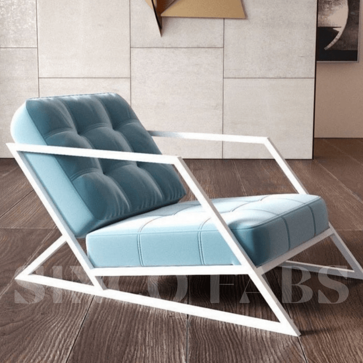 LOFT Sculpted Slumber: Contemporary White Frame Lounge Chair with Plush Blue Velvet Seating