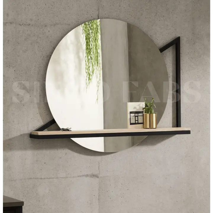 LUXURIOUS ROUND MIRROR WITH AN ATTACHED REFINED DISPLAY SHELF