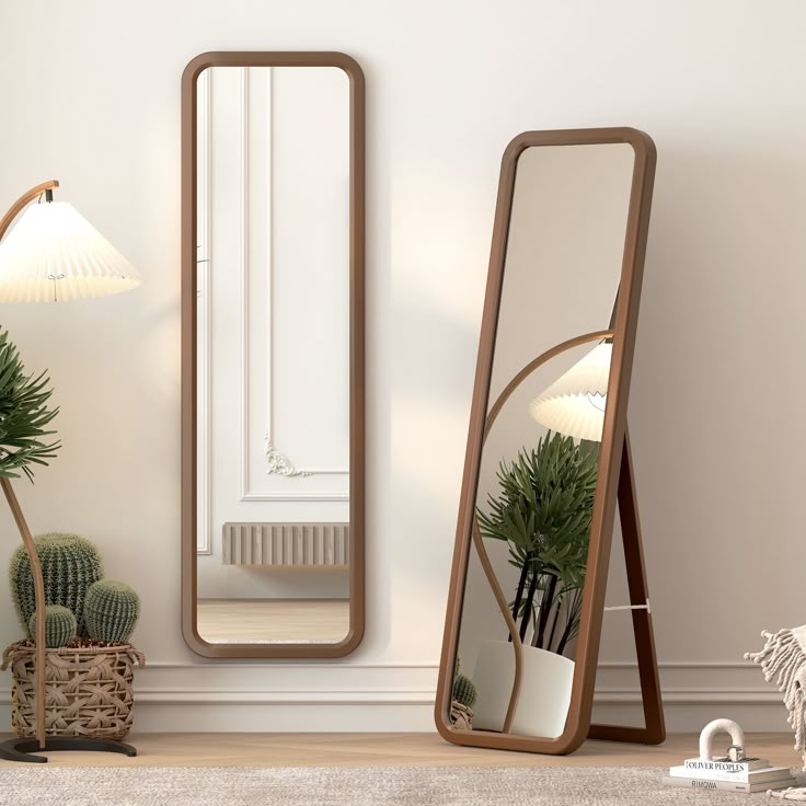 Maximize your space without compromising on style with this beautiful full-length standing mirror. The integrated hanging feature...