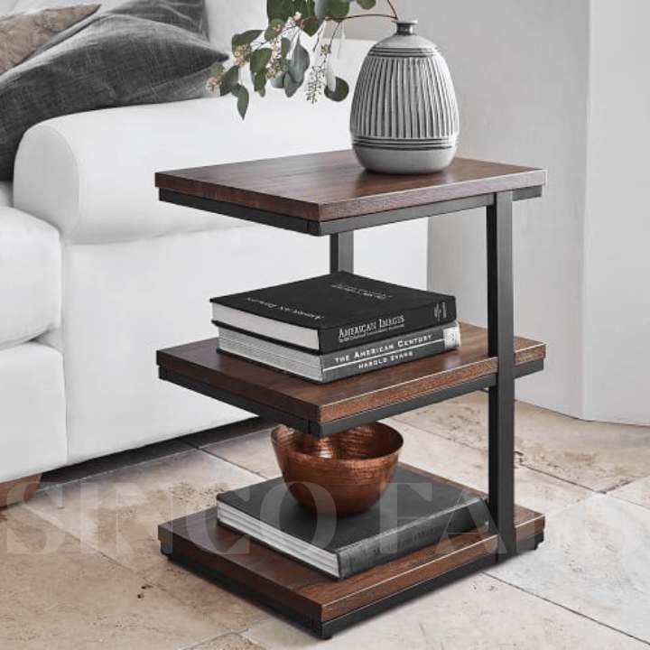 Trio Reach Table: Modern Three-Tiered Side Table in Wood & Metal