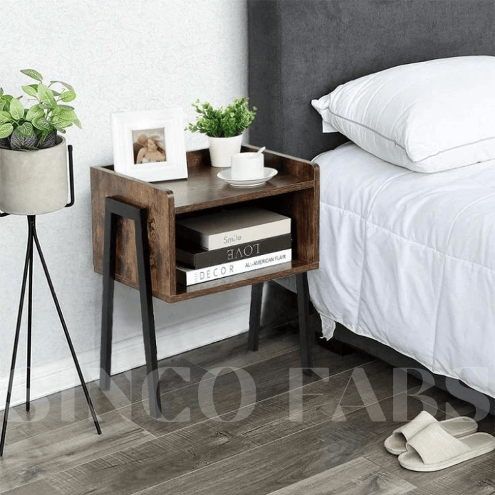 Duo Tier Nocturne: Modern Wood & Metal Bedside Table with Storage