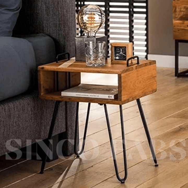 Quadro Wood Reach: Compact Side Table with Open Acacia Shelf & Metal Legs