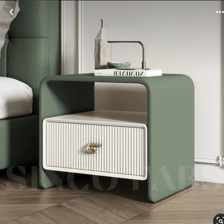 Beverli Curve Rest: Modern Green Bedside Table with Sculpted Handle