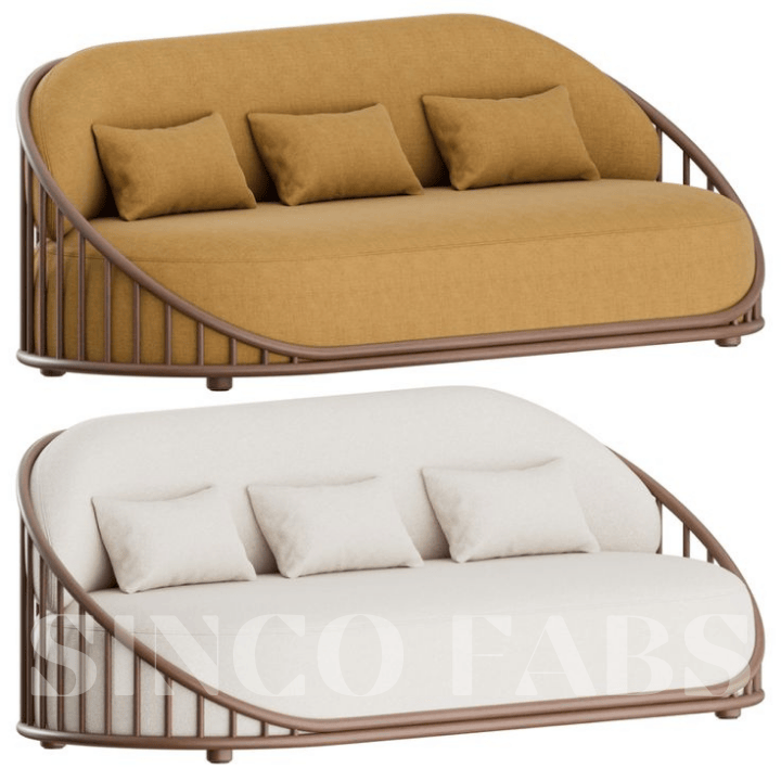 Elevate your relaxation in Kerala with the Cask Sculpted Comfort sofa. Its beautifully curved wooden frame and the sumptuously soft white cushions offer a unique and luxurious seating experience with a touch of natural warmth.