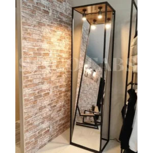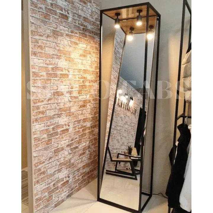 Embrace urban sophistication with this loft-inspired full-length mirror. The combination of a black metal frame, wooden top, and integrated spotlights creates a stylish and functional statement piece for any modern interior.