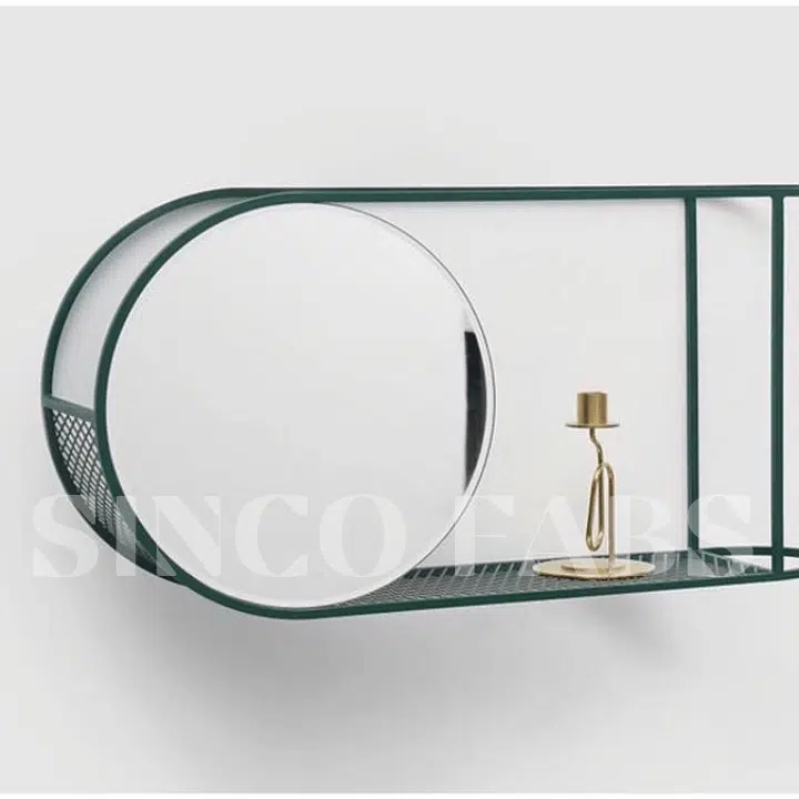Enhance your space with the Reflect & Organize shelf. This modern wall unit combines a stylish display shelf with a convenient integrated round mirror, perfect for Indian homes.