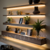 Elevate your wall decor with Reflected Radiance. These designer floating shelves with subtle underlighting create a sophisticated and inviting atmosphere in your Indian home.