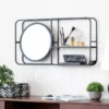 Structured Reflection Shelf Wall Organizer with Integrated Round Mirror