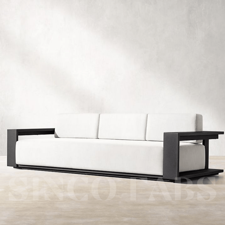 Experience lasting outdoor comfort in Kerala with the DuraWhite sofa. Its durable dark aluminum frame and the generously padded white cushions create a modern and luxurious space for relaxation and conversation.